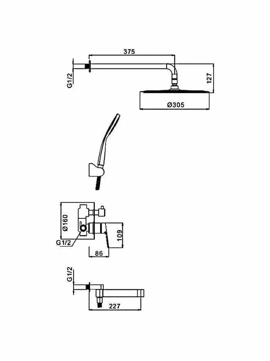 | Дополнительная информация | размеры верхнего душа – 305 мм x 305 мм; длина рычага 10.9 см |