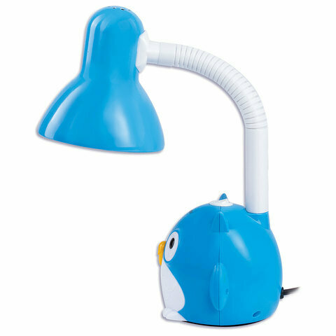 Лампа (светильник) настольная детская для рабочего стола OU-603 с совой, на подставке, цоколь Е27, синяя, Sonnen, 236674
