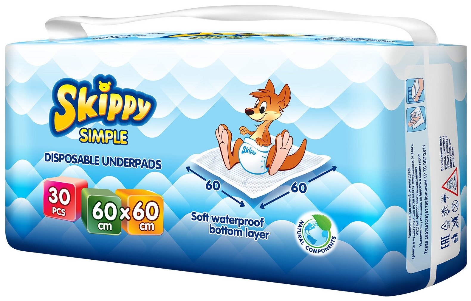 Купить Пеленки детские гигиенические впитывающие Skippy Simple, р-р 60x60 30 шт.