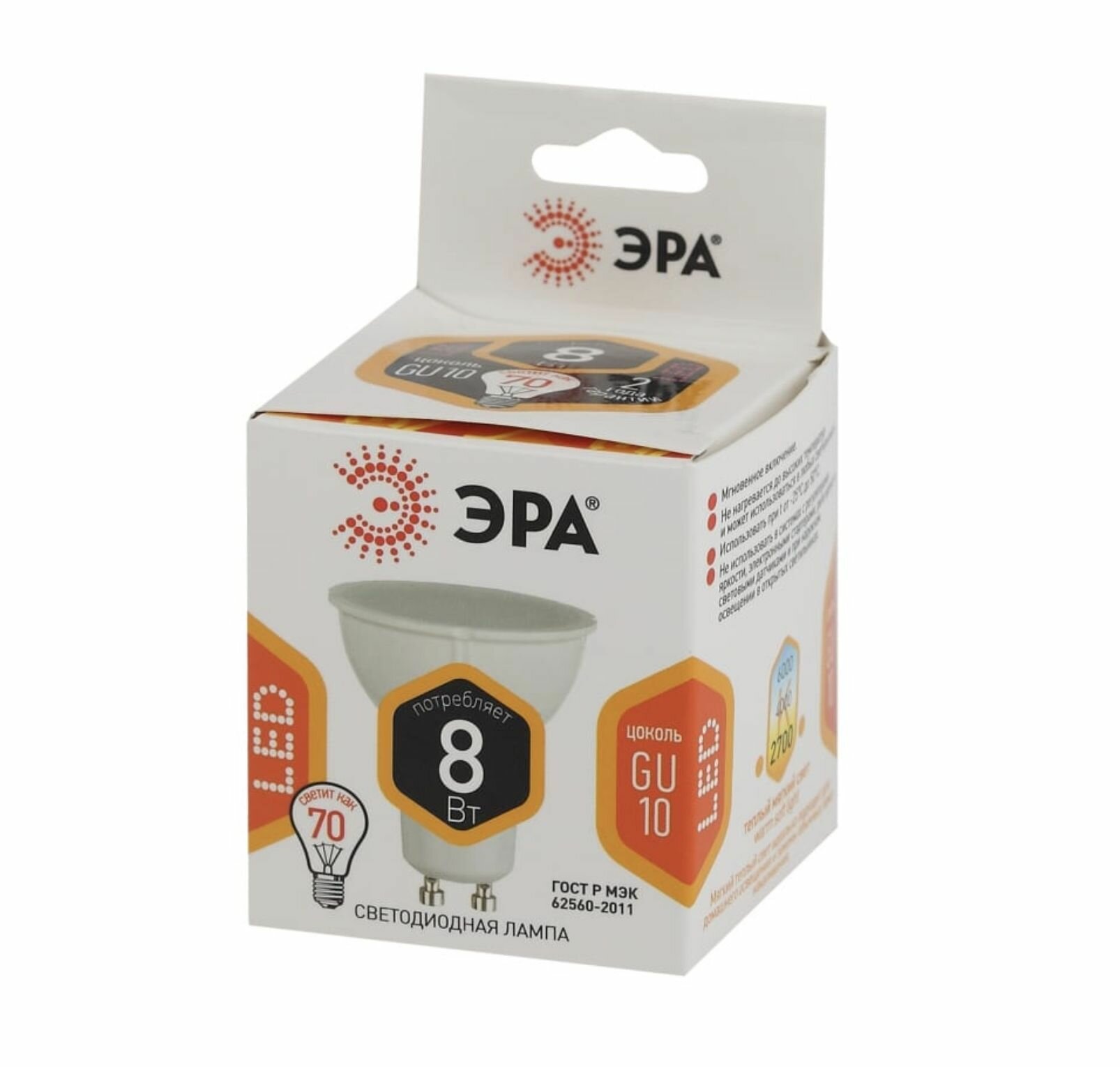 Лампа светодиодная LED MR16-8W-827-GU10 MR16 8Вт софит GU10 тепл. бел., ЭРА Б0036728 (1 шт.)