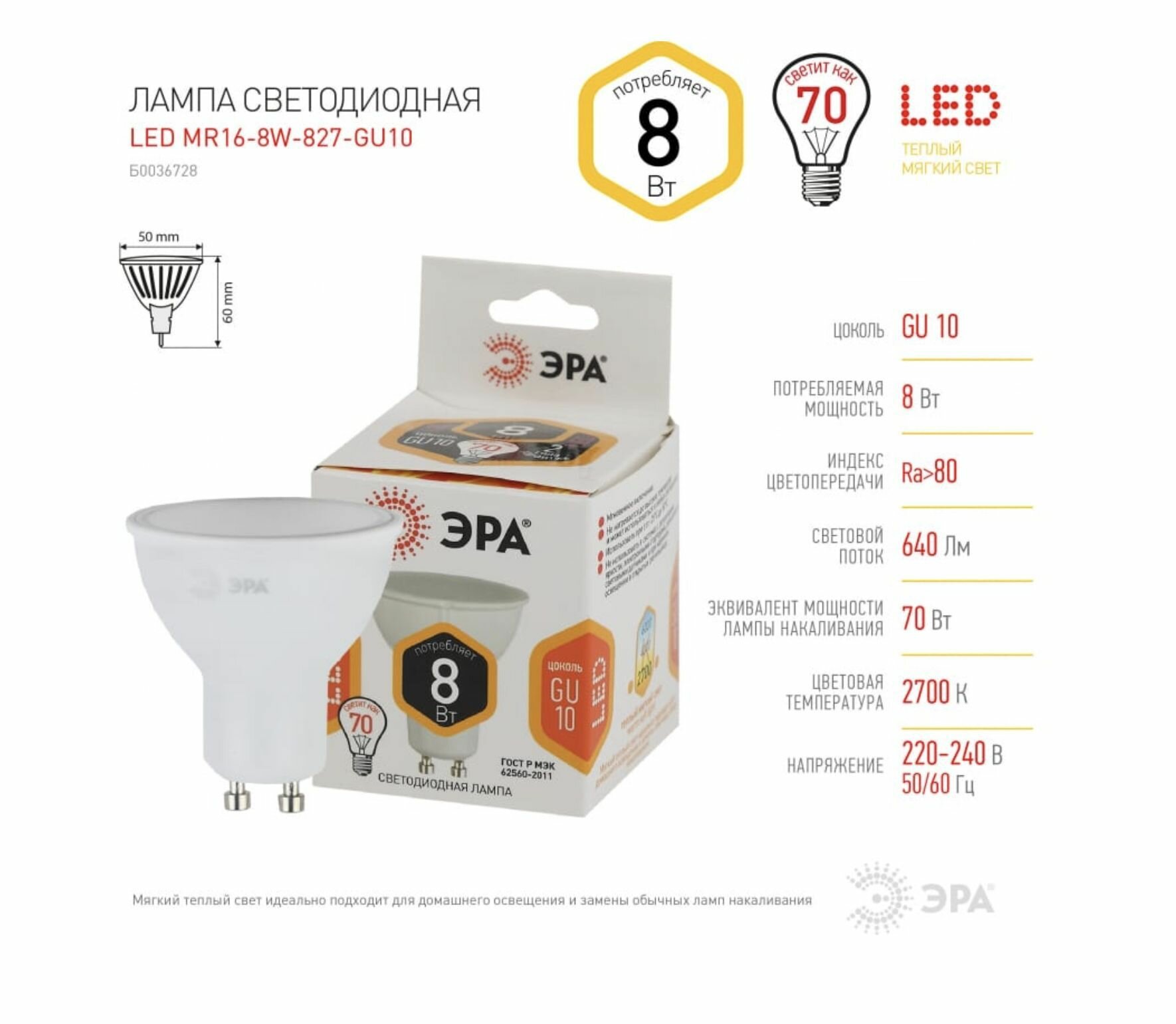 СохранитьЭРА LED MR16-8W-827-GU10 (диод, софит, 8Вт, тепл, GU10) интересное: