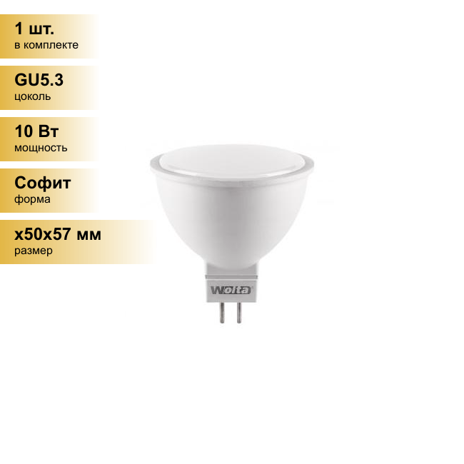 Купить Wolta лампа св/д MR16 GU5.3 220V 10W(825lm) 4000K 4K матов 52X50 25SMR16-220-10GU5.3
