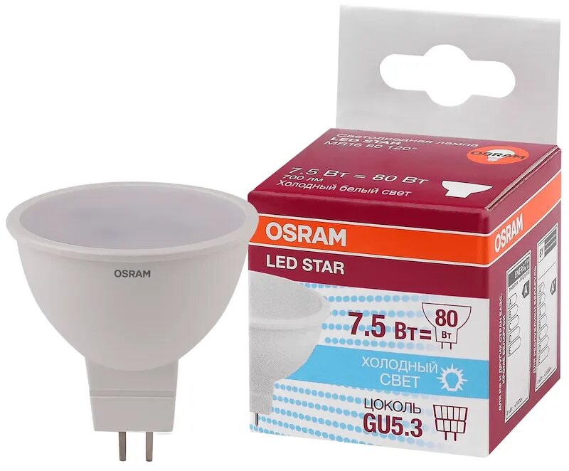 Ниже Вы можете прочитать отзывы на Лампа светодиодная OSRAM LED Star MR16 7.5Вт 4000К GU5.3, ознакомится с подробными характеристиками, посмотреть интересные обзоры и фотографии на Лампа светодиодная OSRAM LED Star MR16 7.5Вт 4000К GU5.3.