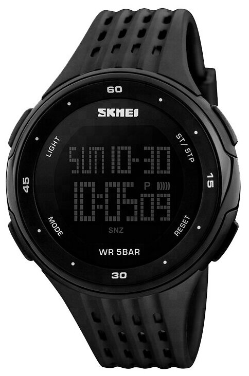 Часы наручные электронные спортивные SKMEI кварцевые, с будильником и подсветкой, круглые, черные