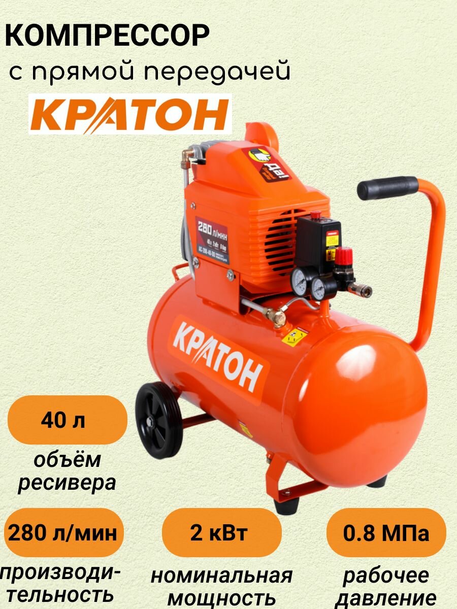 Компрессор с прямой передачей Кратон AC-280-40-DD, 8 бар, 280 л/мин, 2000 Вт, 40л