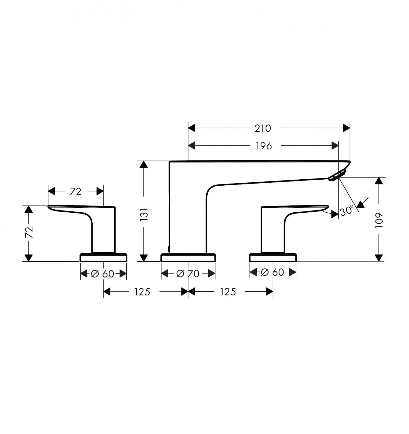 Внешняя часть смесителя для ванны hansgrohe Talis E на край ванны, на 3 отверстия 71747000, хром