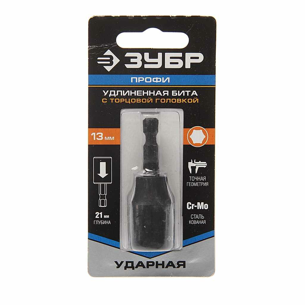 Зубр Бита "профи" с торцовой головкой, удлиненная, хвостовик E 1/4", 13мм, 1шт 26377-13 .
