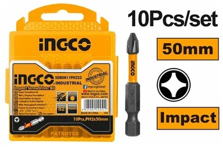 Набор ударных бит IMPACT INGCO SDBIM11PH223 INDUSTRIAL РН2х50 мм 10 шт.