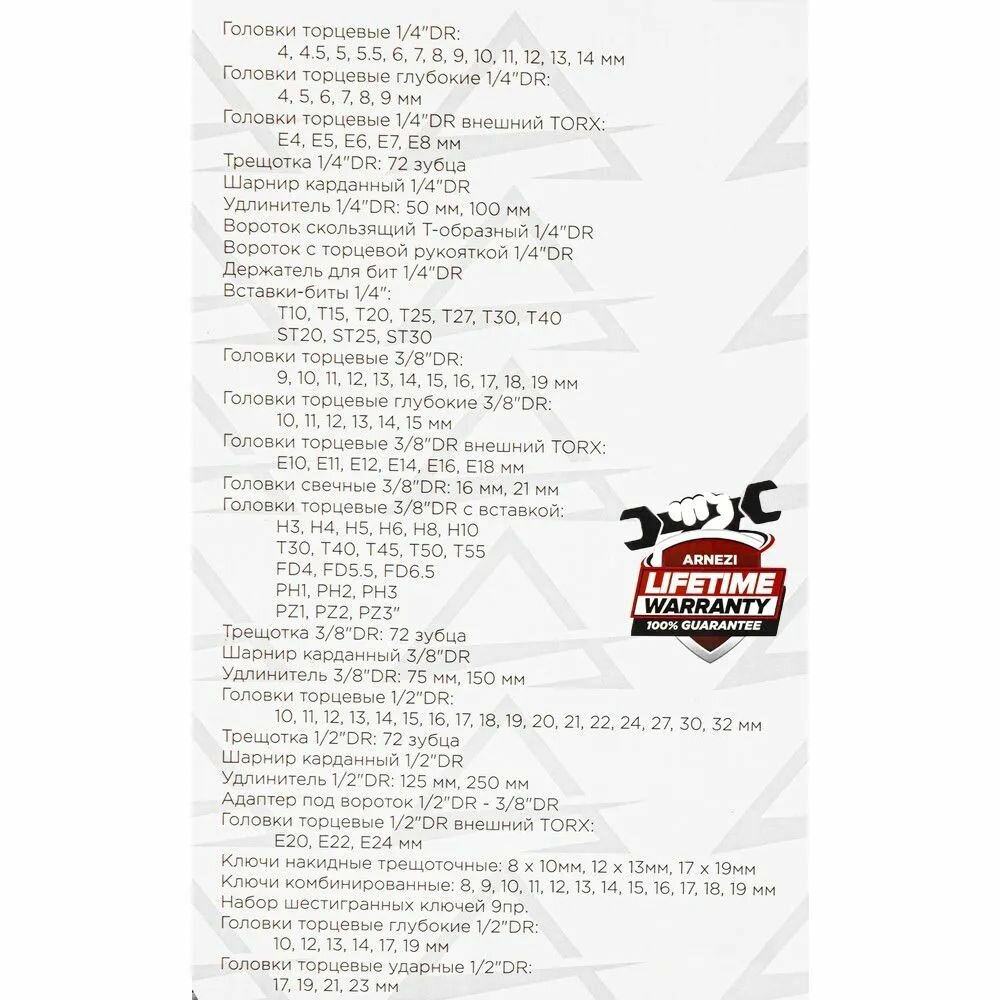 ARNEZI R0900082 набор инструментов 82 пр. 1 / 4dr, 1 / 2dr