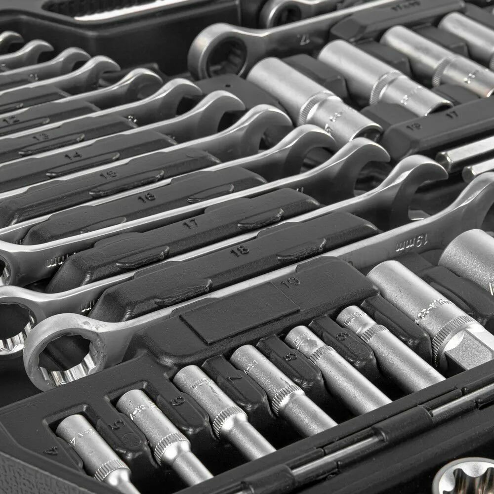 | Инструменты в комплекте | вороток для головок / ключи гаечные / ключи имбусовые (шестигранные) / рукоять для бит / рукоять для головок / трещотка |