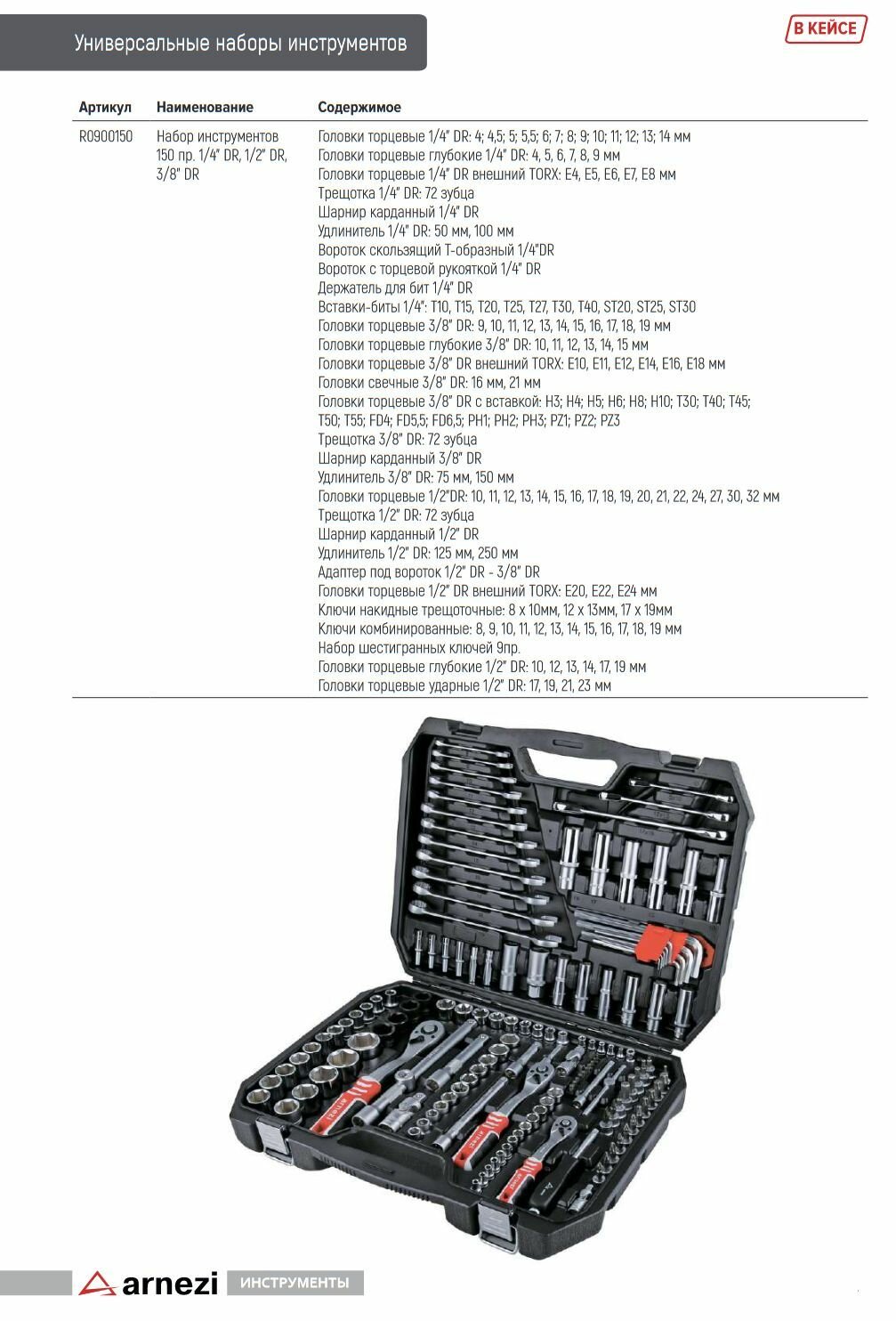 Набор Инструментов 150 Пр. 1/4"Dr, 1/2"Dr, 3/8"Dr Arnezi R0900150 ARNEZI арт. R0900150