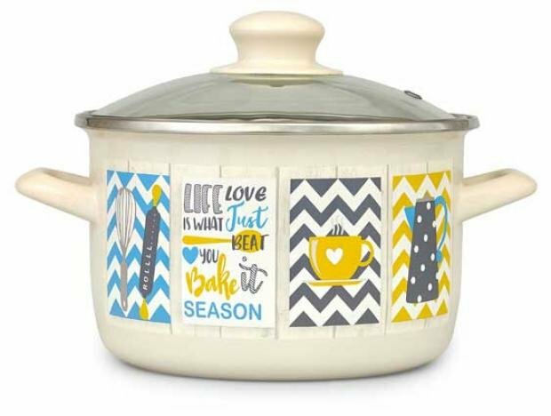 Кастрюля эмалированная сталь, 3 л, с крышкой, крышка стекло, Metrot, Кантри Новум, 346742, индукция