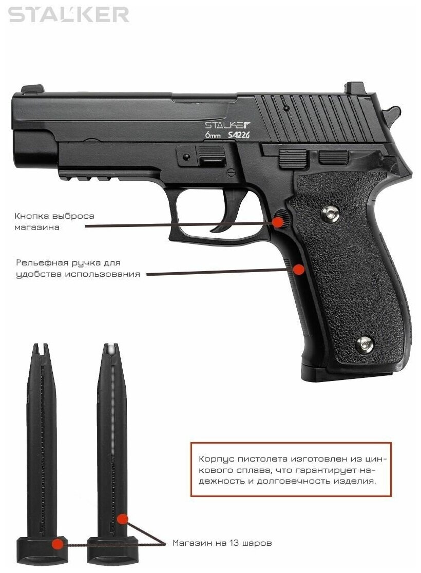 Пистолет пневматический Stalker SA226 Spring (SigSauer P226), к.6мм SA-33071226 Stalker SA-33071226 интересное: