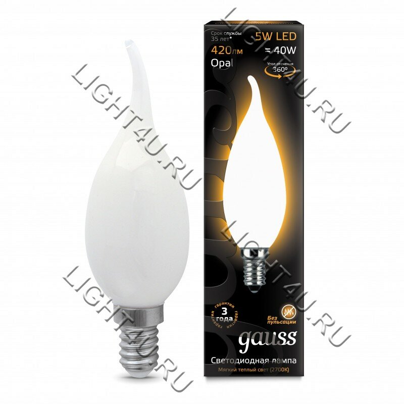 Лампа светодиодная 220В E14 5,0Вт, свет теплый 2700K Filament Candle Tailed OPAL gauss 104201105