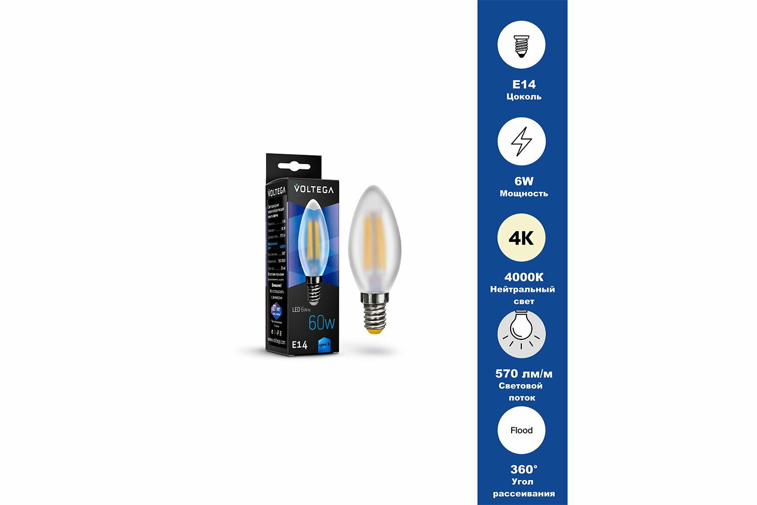 VOLTEGA Светодиодная лампа VOLTEGA Свеча матовая Е14 4000К 6W 7045
