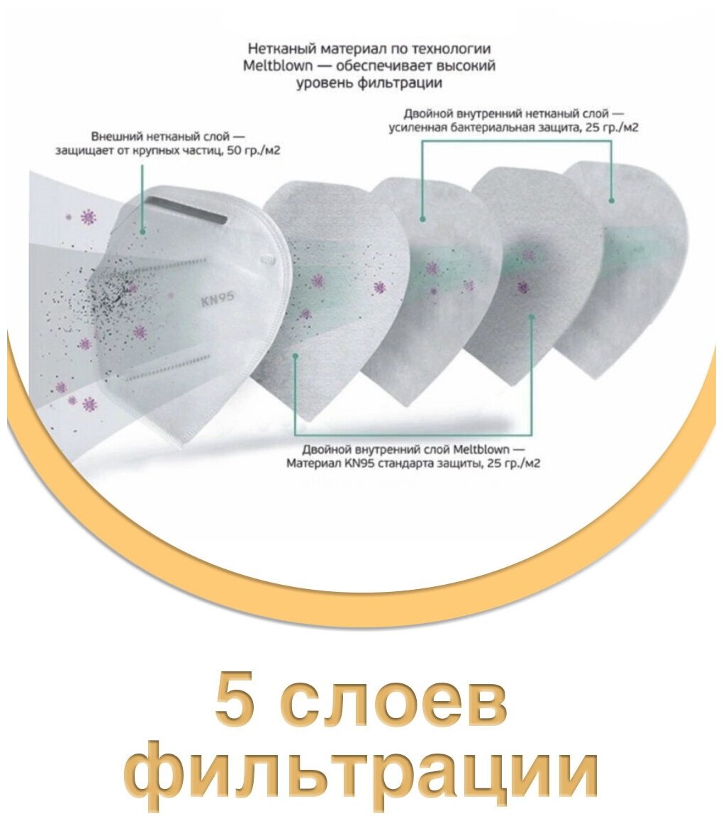 Маски медицинские одноразовые 50 шт, белая (респиратор KN95 без клапана)