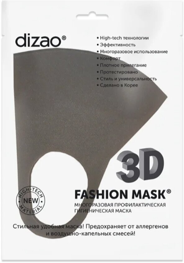 Dizao Маска гигиеническая профилактическая 3D Fashion Mask многоразовая, цвет серый (8 г) интересное: