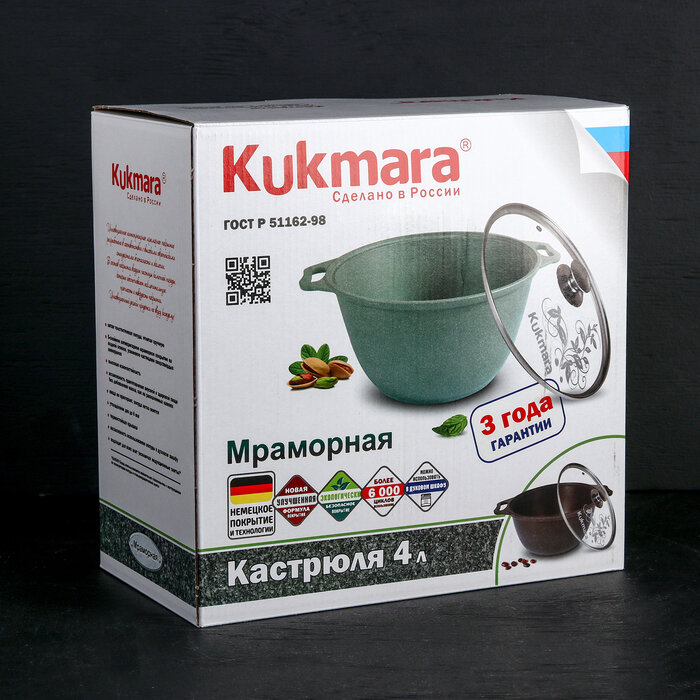 Кастрюля 4 л KUKMARA кмт42а, алюминий, темный мрамор