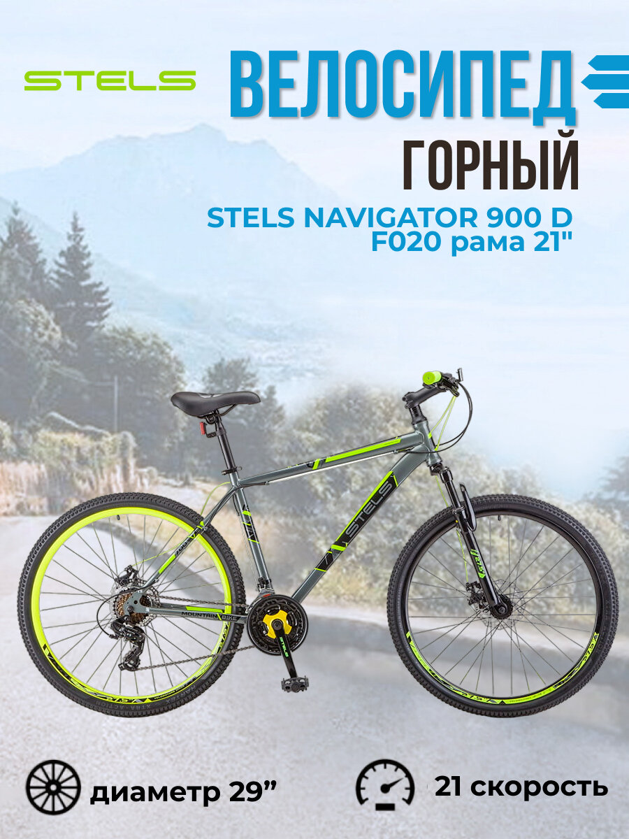 Велосипед Stels Navigator-900 D F020 29" (Велосипед Stels Navigator-900 D 29" F020 21" Серый/жёлтый 2021 F020, LU088991)