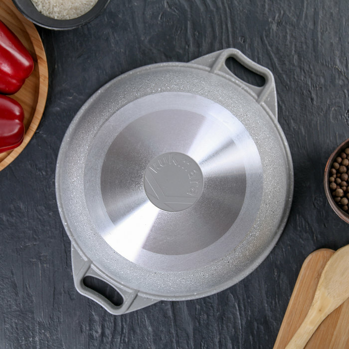 Кастрюля KUKMARA, 2 л, стеклянная крышка, антипригарное покрытие, цвет серый мрамор