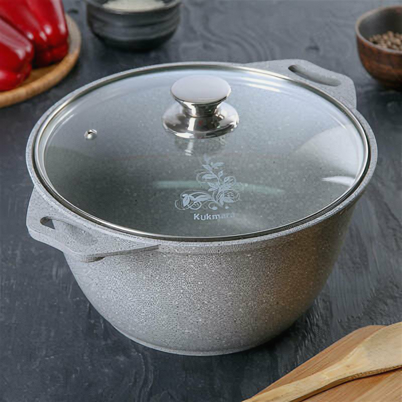 Кастрюля Kukmara Темный мрамор 6л со стеклянной крышкой (кмт62-1а) .