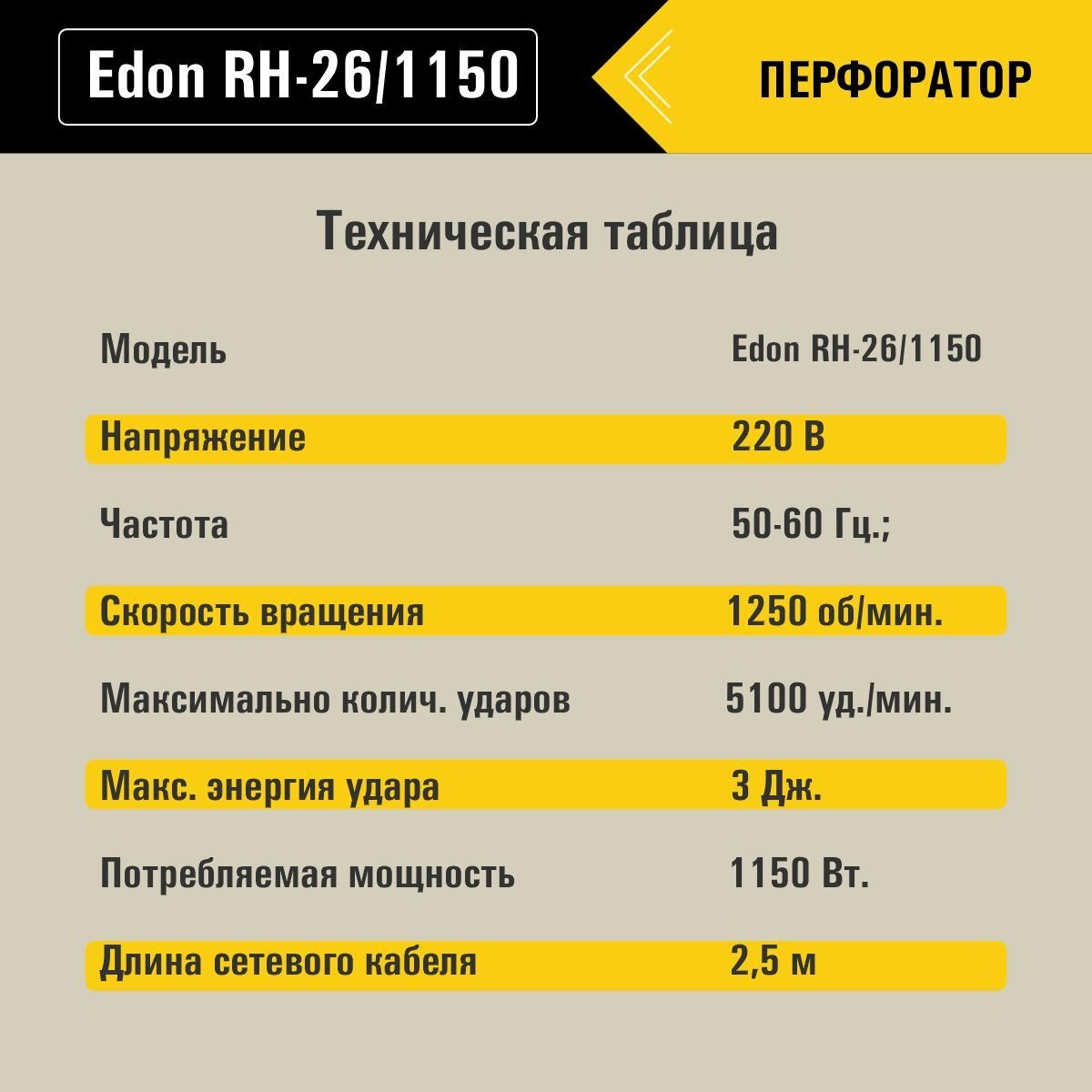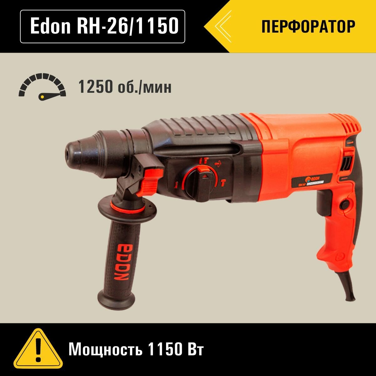 Перфоратор EDON (1150 Вт, 1250 об/мин., RH-26/1150)