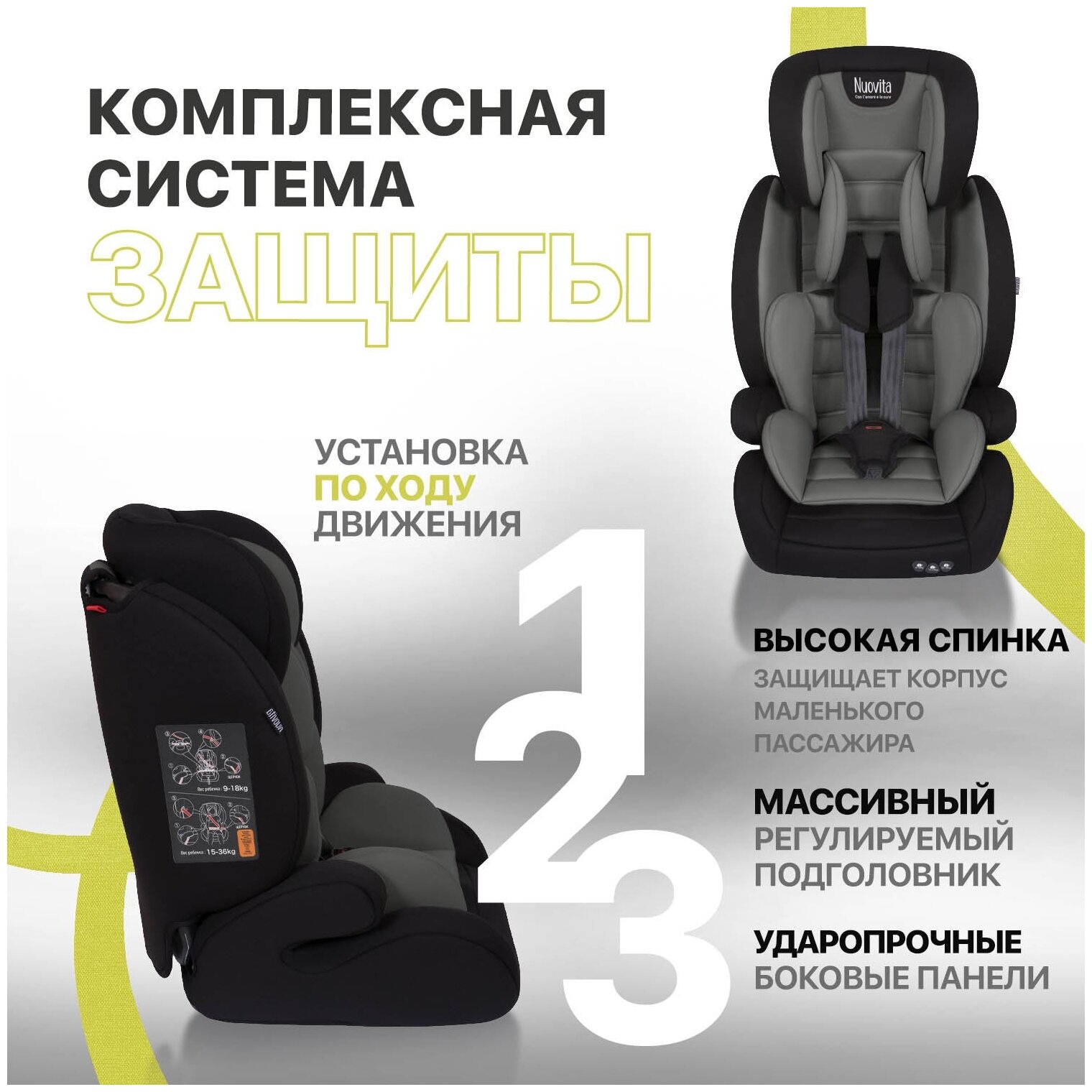 Купить Автокресло трансформер Nuovita Maczione N123-1, группа 1/2/3, (Grigio/Серый)