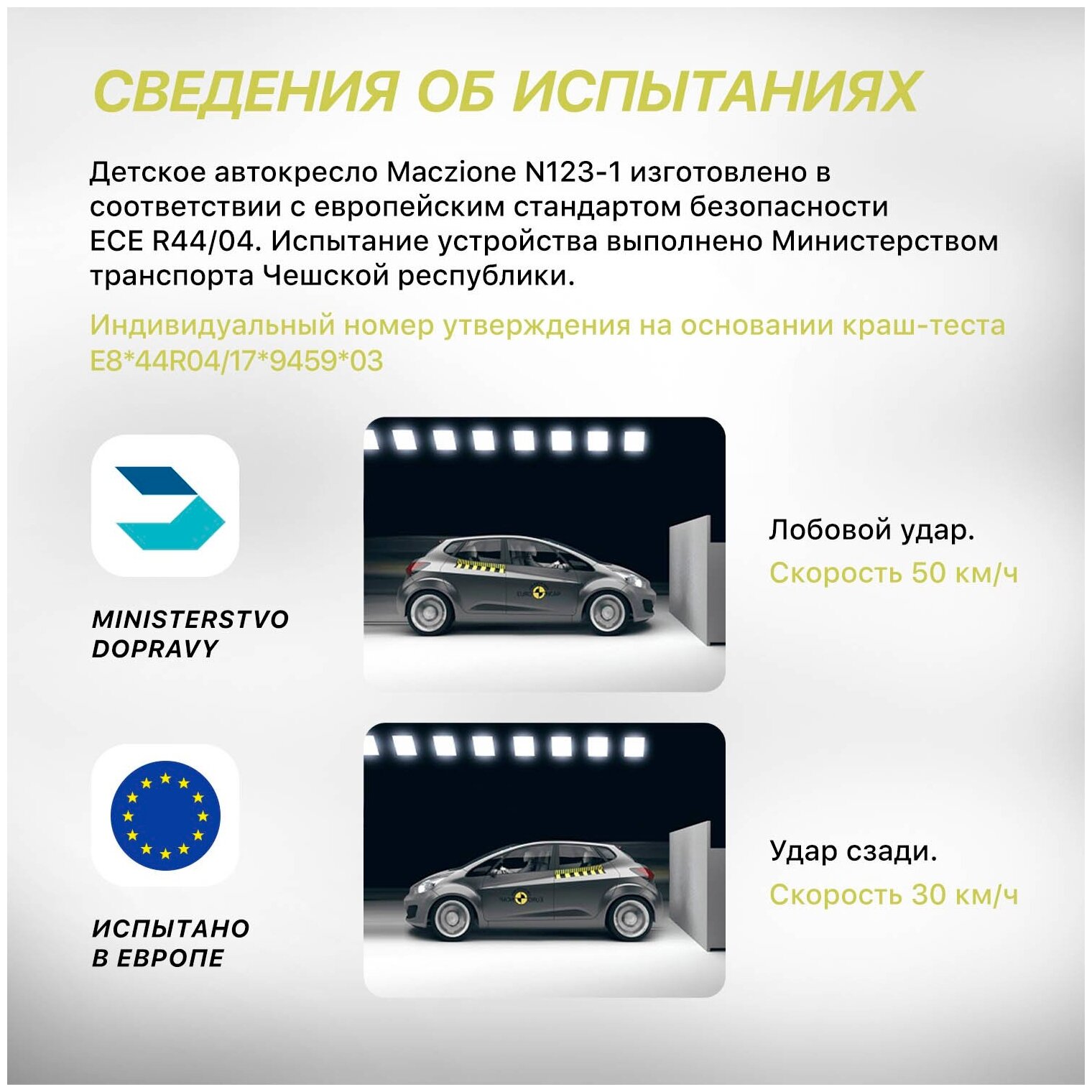 | Оценка краш-теста | ECE R44/04 |