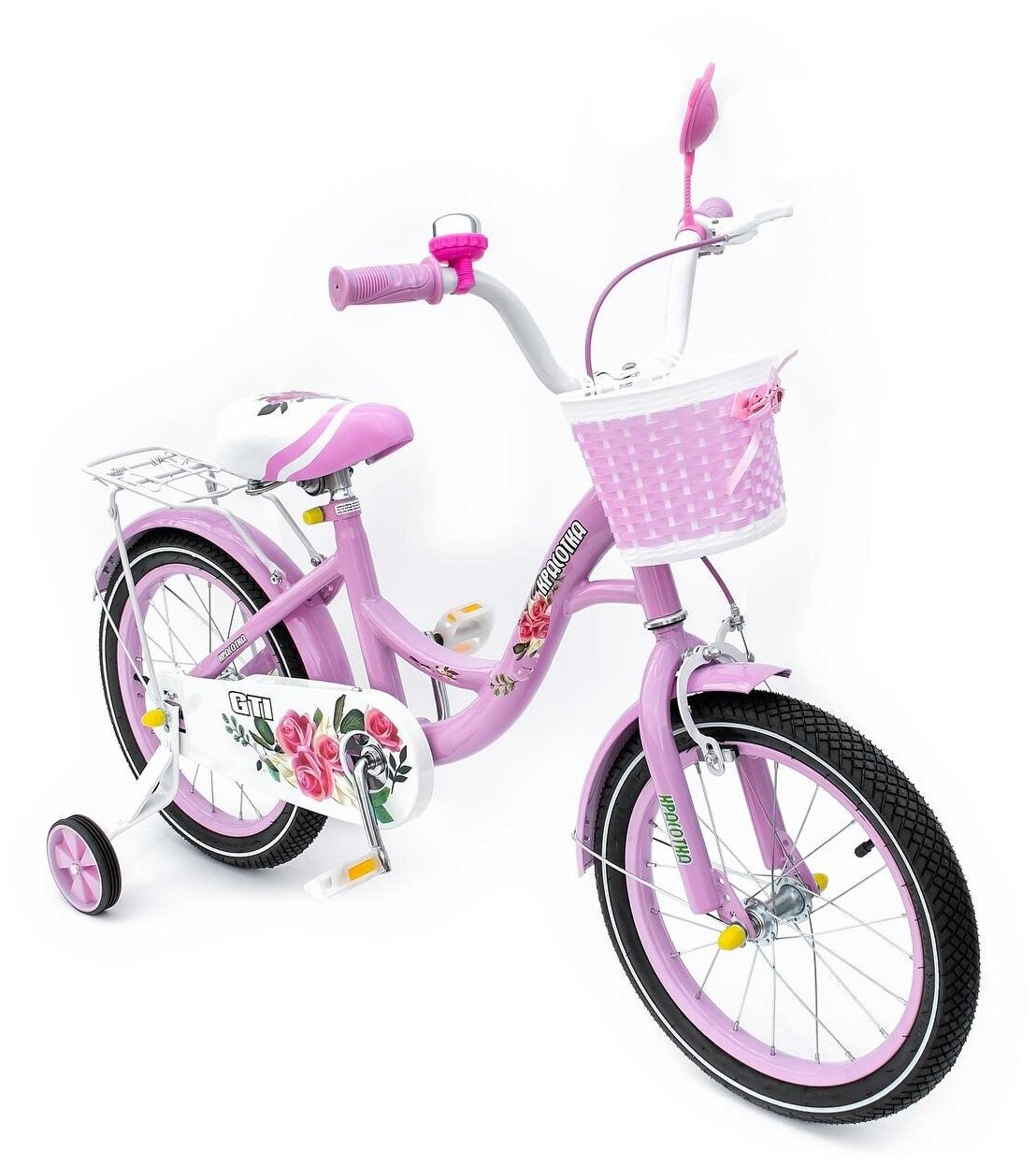 | В комплекте | багажник, боковые колеса, велоинструмент, защита цепи, звонок, корзина на руле, крылья |