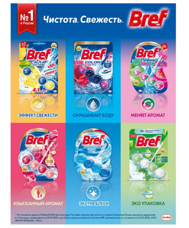 Ниже Вы можете прочитать отзывы на Туалетный блок Bref Сила-Актив Лимонная свежесть 2х50 гр, ознакомится с подробными характеристиками, посмотреть интересные обзоры и фотографии на Туалетный блок Bref Сила-Актив Лимонная свежесть 2х50 гр.