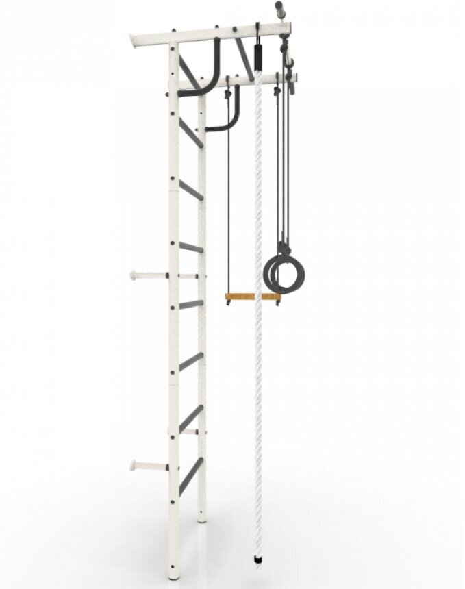 Шведская стенка Rokids Роки-1, кольца, канат, трапеция, турник, бело-серый