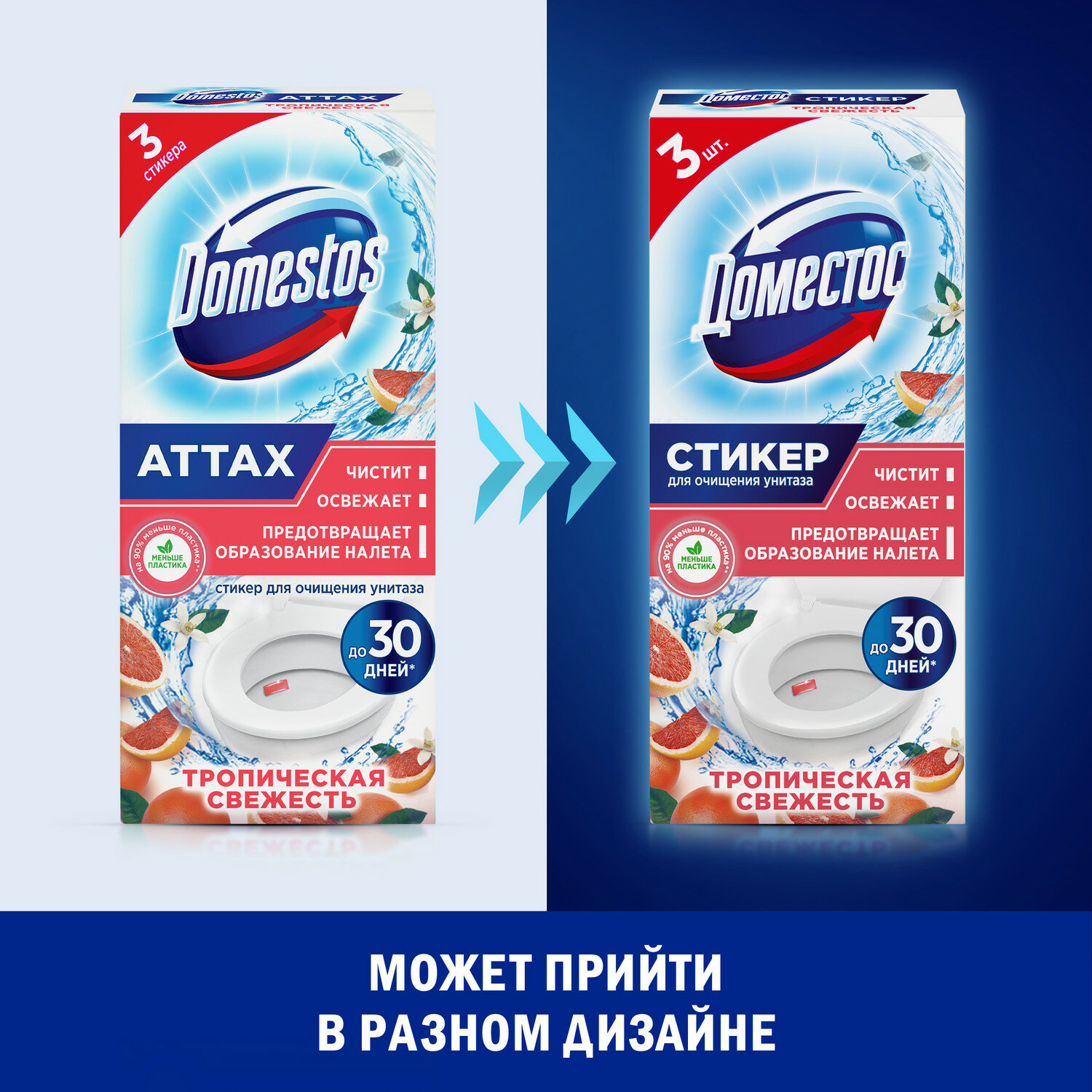 Купить Domestos Attax, антибактериальный стикер для очищения унитаза, Тропическая свежесть, 3 шт х 10 гр