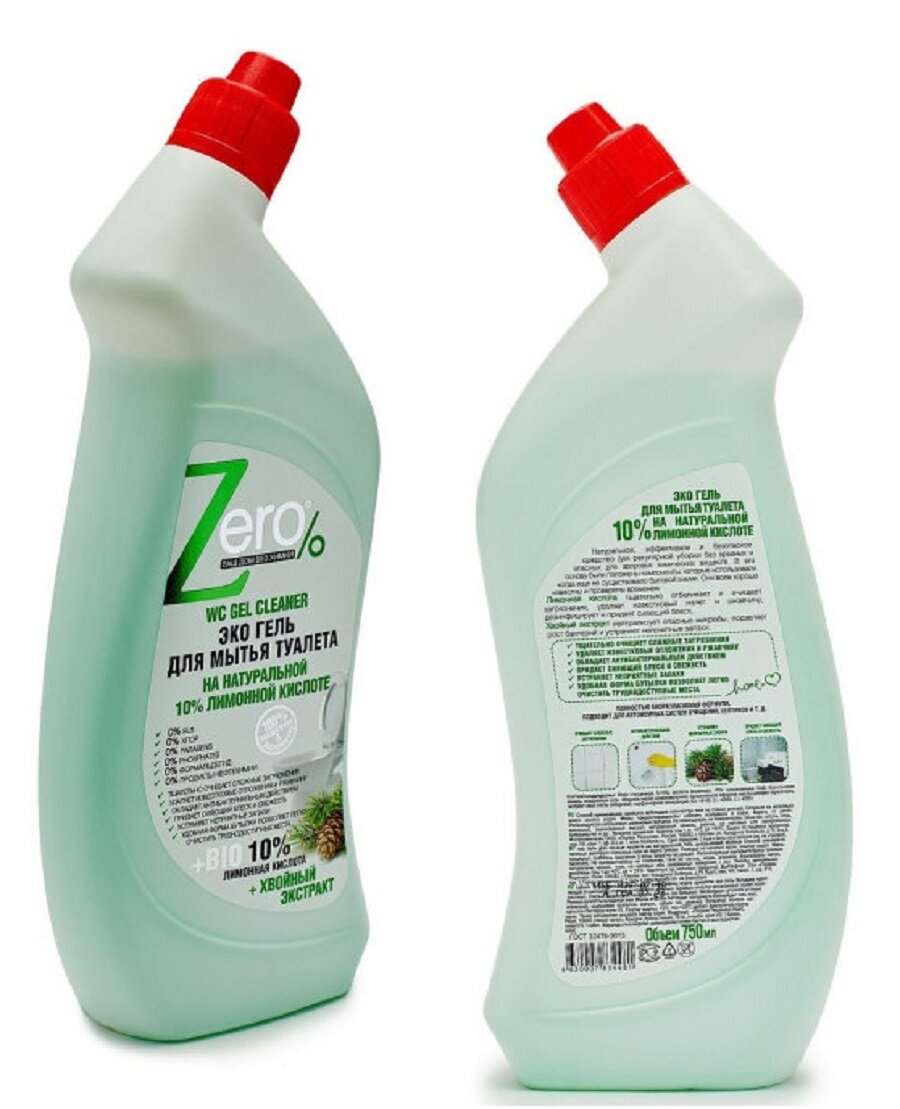 Zero Эко гель для мытья туалета на натуральной 10% лимонной кислоте с хвойным экстрактом 750 мл