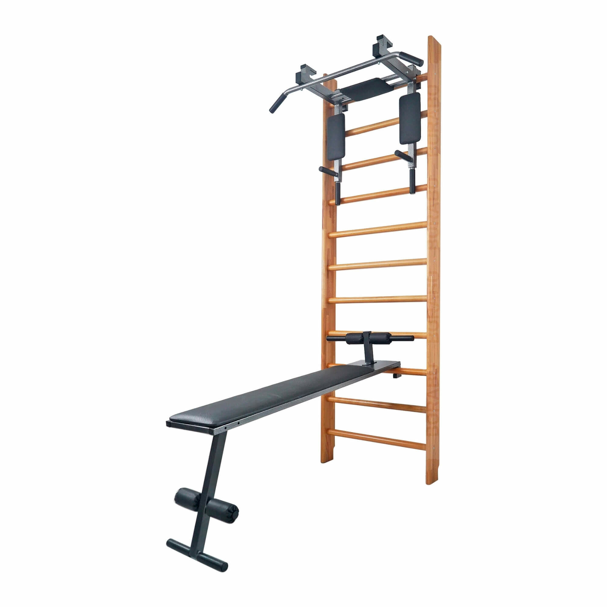 Купить Шведская стенка деревянная Бук ламельный 260x80x14 см + Турник Брусья Пресс + Доска для пресса с валиками горизонтальная