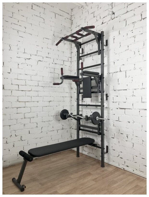 | Подробная комплектация | шведская стенка, -турник 3 хвата, съемный, -брусья+пресс, съемные, -скамья, -упор под штангу, -комплект крепления к стене. Гриф со штангой не входят в комплект! |