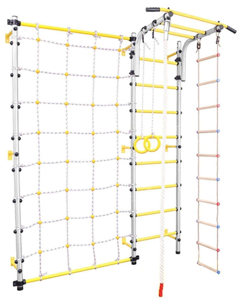 | В комплекте | веревочная лестница, гимнастические кольца, канат, сетка для лазания, турник |