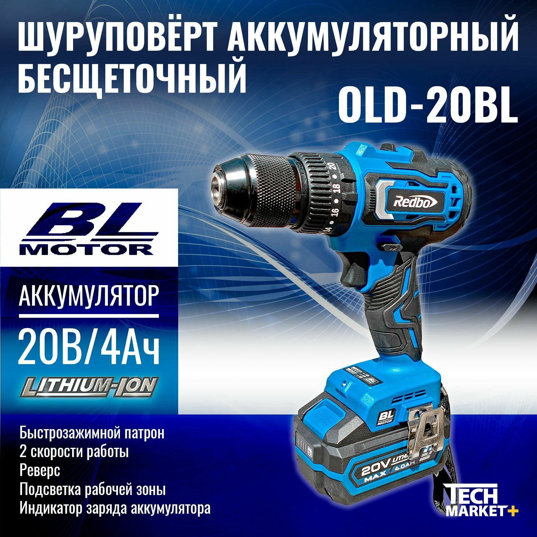 Купить Дрель-шуруповерт аккумуляторная безщеточная, Redbo, OLD-20PBL
