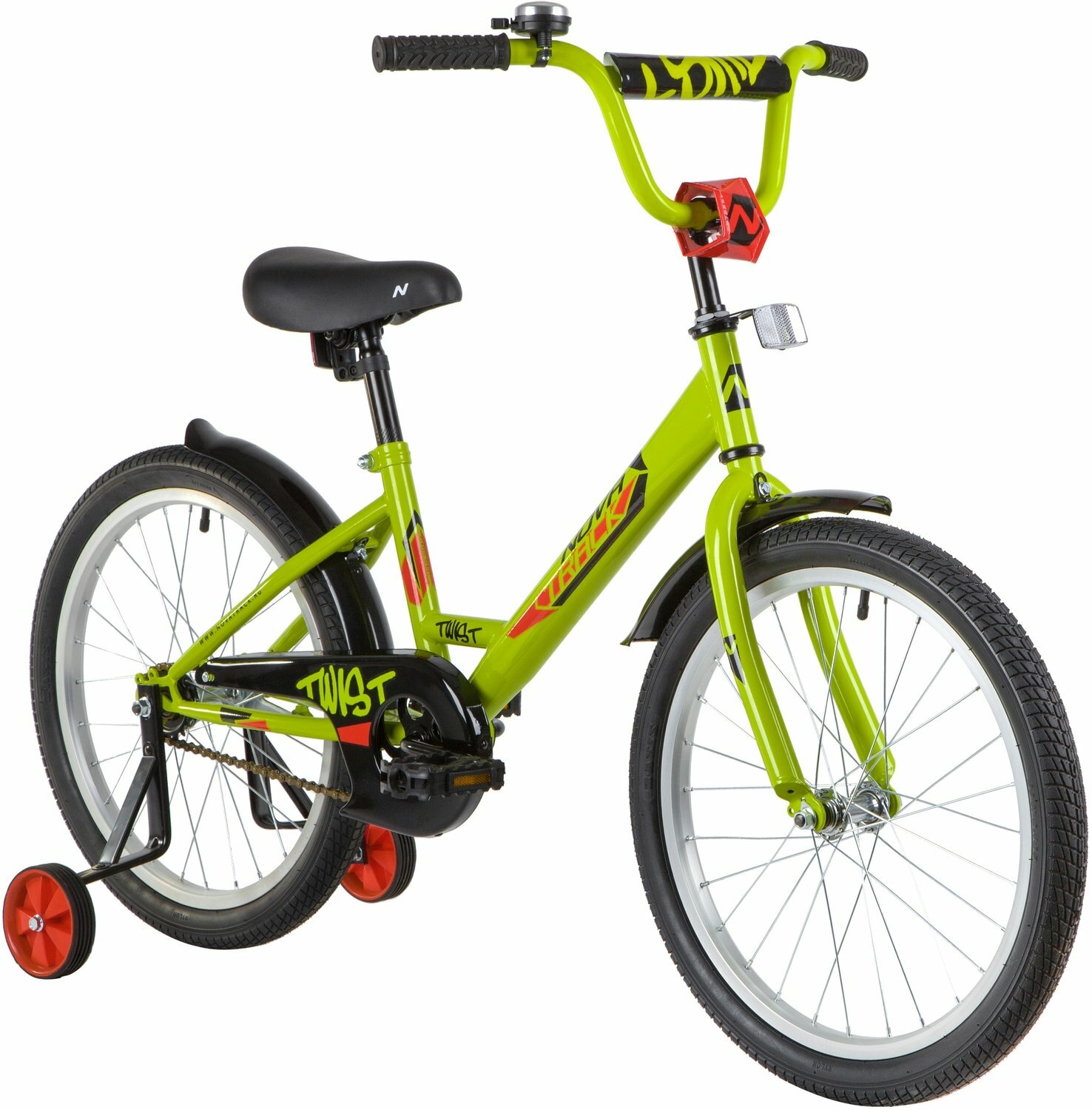 Велосипед NOVATRACK 20" TWIST зелёный, тормоз нож, крылья корот, защита А-тип 201TWIST.GN20