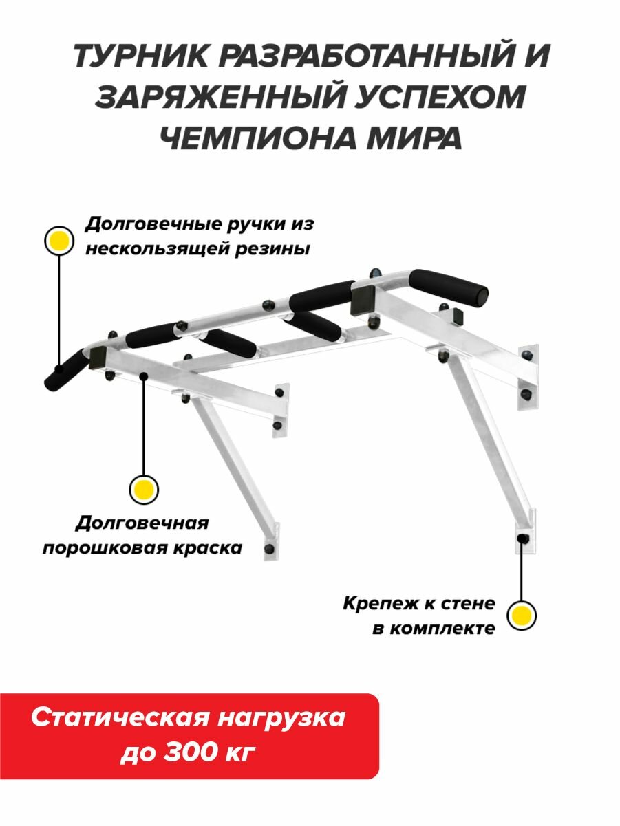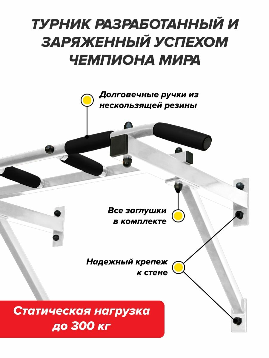 Турник настенный 3 в 1 брусья пресс тренажер для спорта дома, усиленный, нагрузка 300кг Триумф белый (с черными ручками)