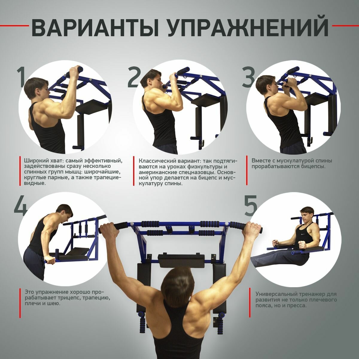 | Дополнительные функции | крепление для боксерской груши / мягкие подушки / противоскользящие ручки / работа с прессом / разборный / разные положения для хвата / регулировка по росту / ручки для хвата / съемный |