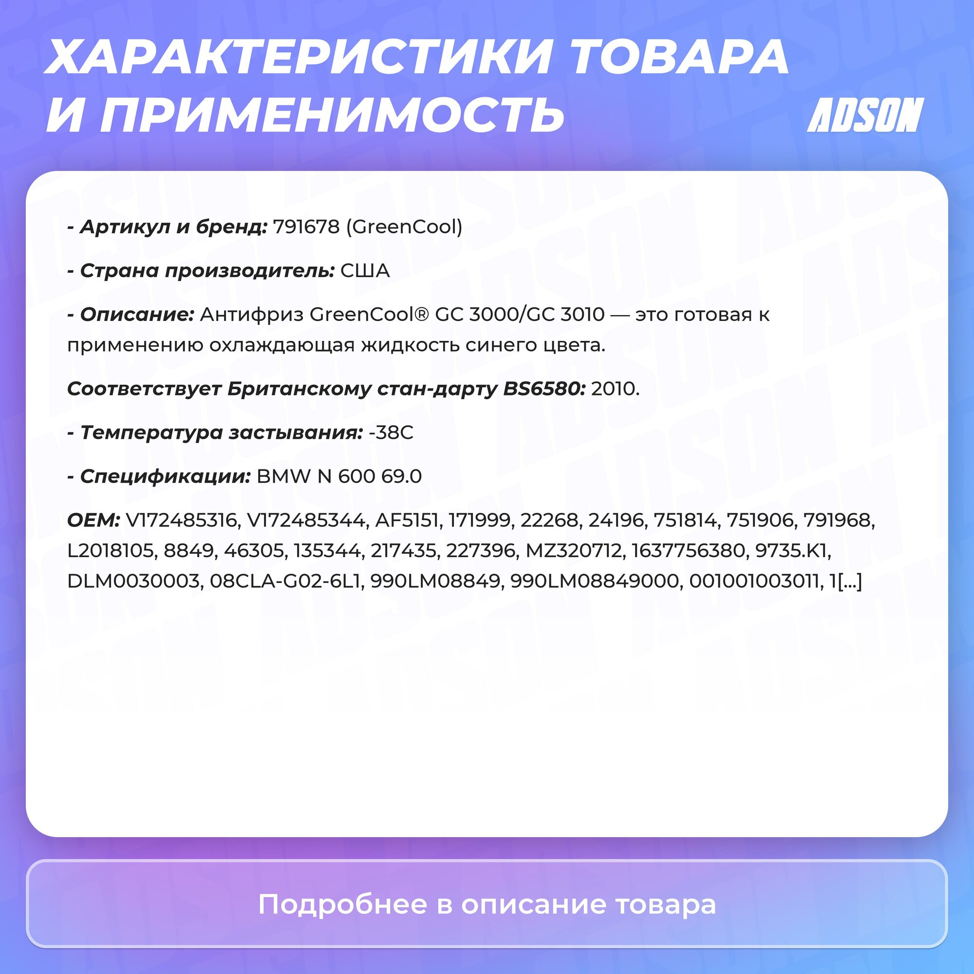 СохранитьАнтифриз g11 greencool gс3010 готовый (синий) 5кг интересное:
