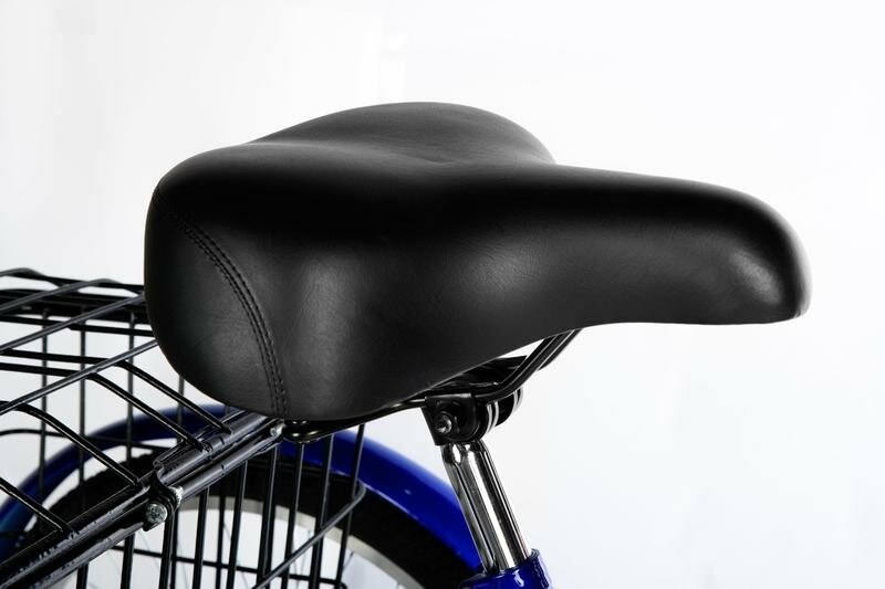 Хорошо "держит" дорогу благодаря качественной резине. Впереди есть корзина, которую можно закрыть. Подходит для длительных поездок благодаря очень удобному увеличенному седлу и упорам на руле. Так же есть ручной и задний тормоз. При необходимости можно регулировать как руль, так и сидение. Очень удобный, простой -таким велосипедом сможет управлять каждый. |