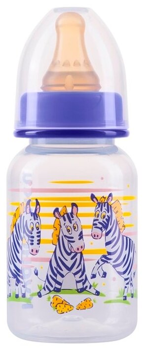 Бутылочка для кормления новорожденного Курносики с латексной соской "Зебры", 0+ мес, 125 мл, синий