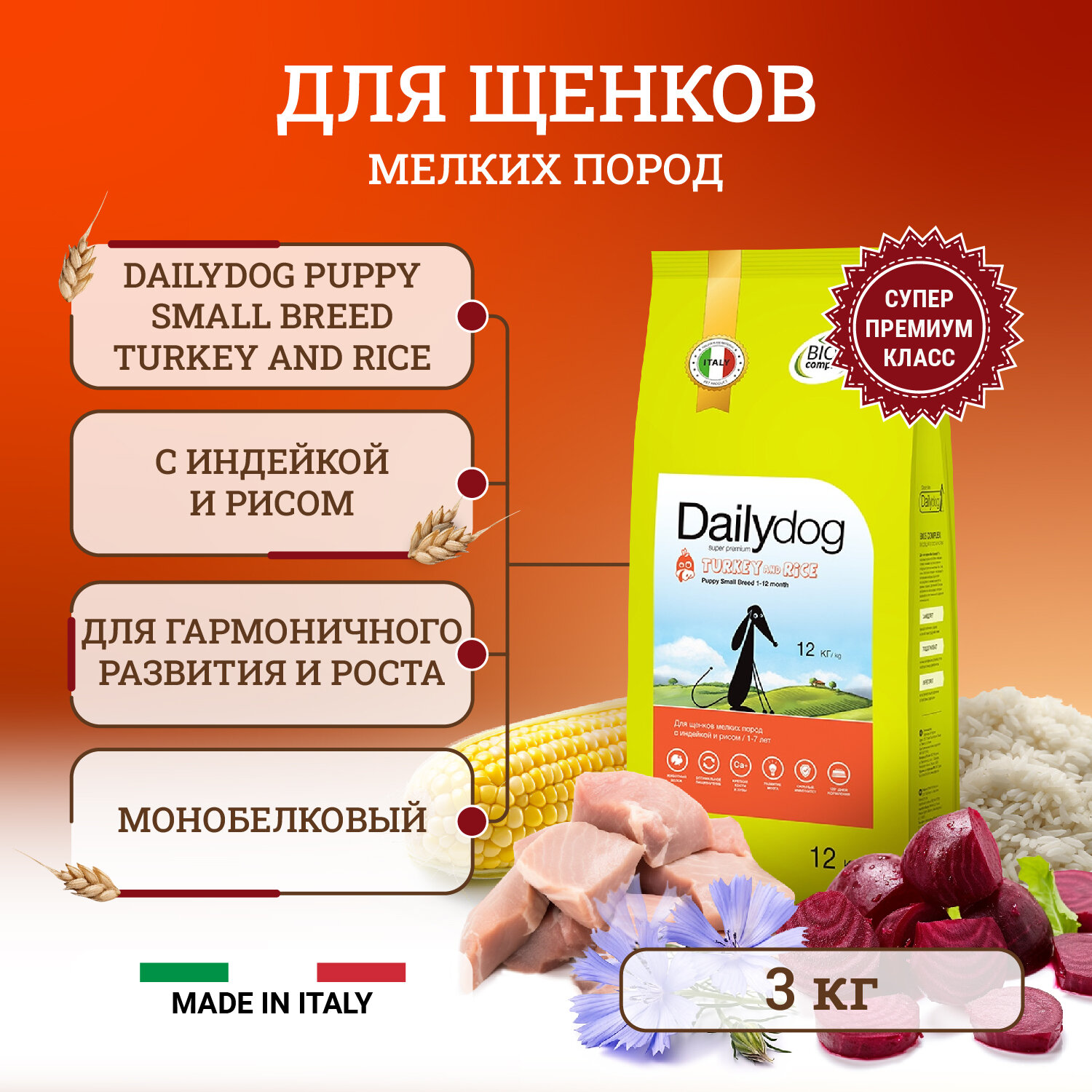 Сухой корм Dailydog для щенков мелких пород, с индейкой и рисом, 3 кг