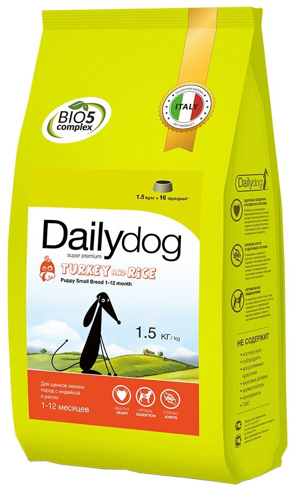 DailyDog Для щенков мелких пород с индейкой и рисом 527ДД1,5, 1,5 кг, 57948