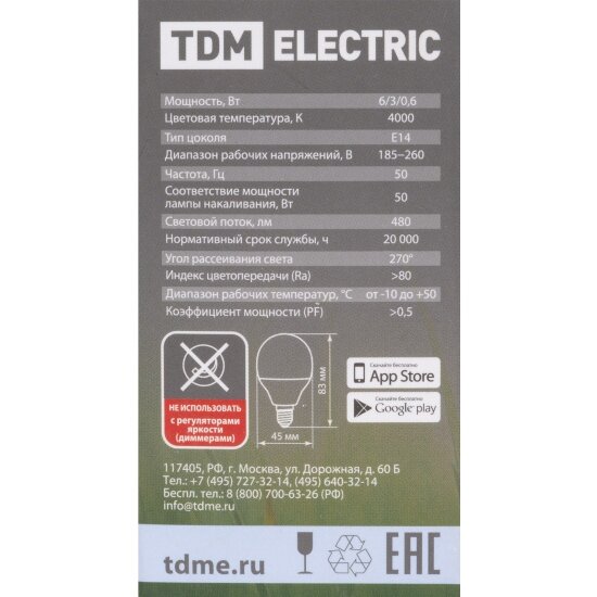 Лампа LED G45 6W E14 220В 4000К диммер STEP TDM SQ0340-0200 интересное: