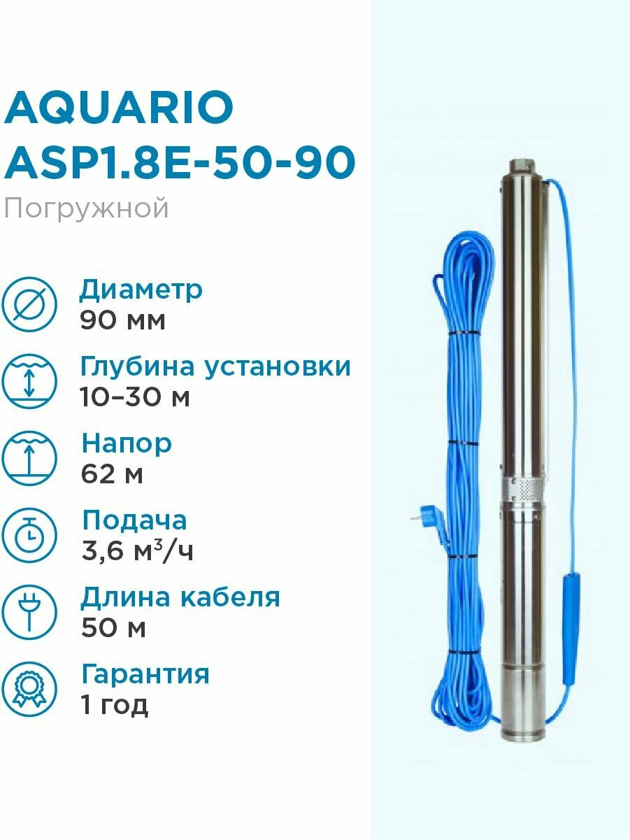 Насос скважинный Aquario ASP1.8E-50-90 с кабелем 50м