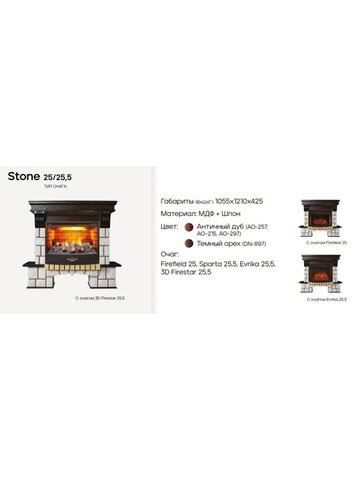 Электрокамин Real Flame Stone 25/25,5 AO-257/215/297 с очагом Sparta 25,5 LED интересное: