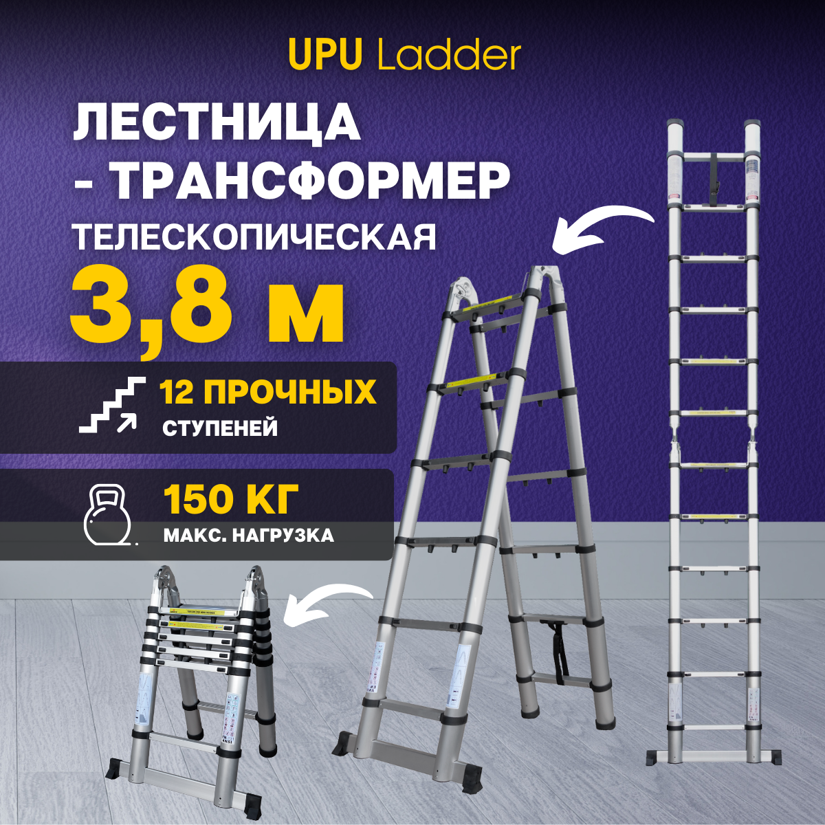 Лестница телескопическая UPU Ladder UPT706 3,8 м интересное: