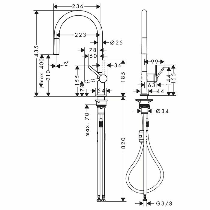Кухонный смеситель однорычажный, 210, с вытяжным изливом, 1jet Hansgrohe 72802670